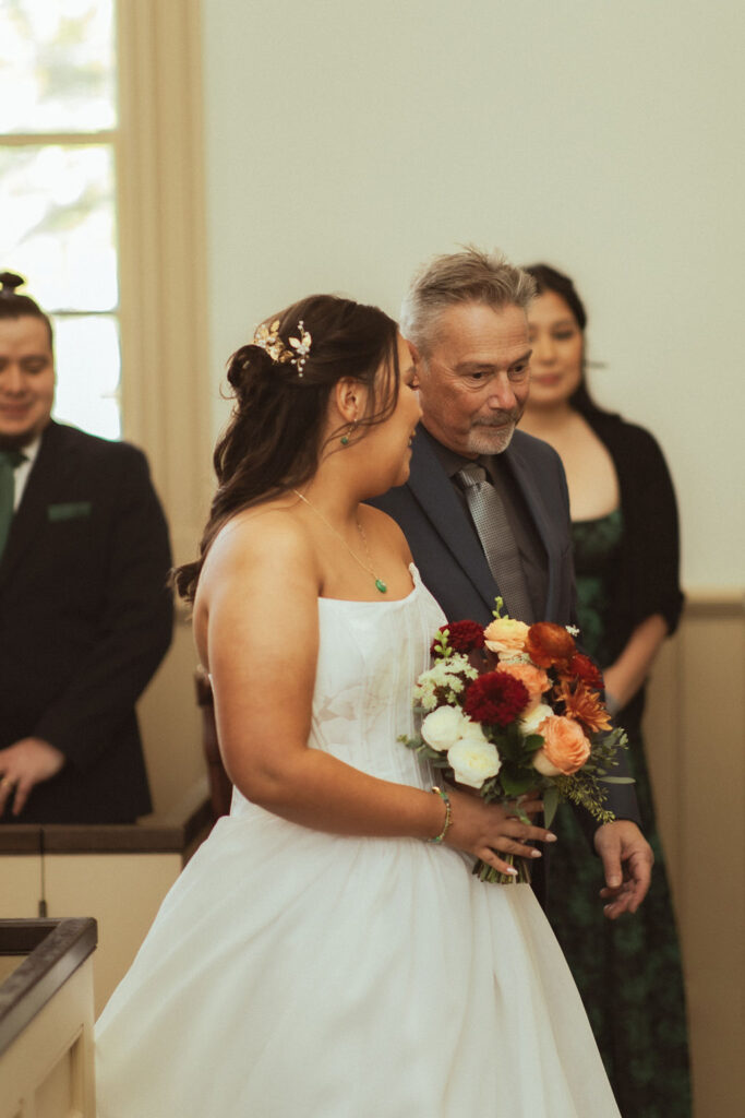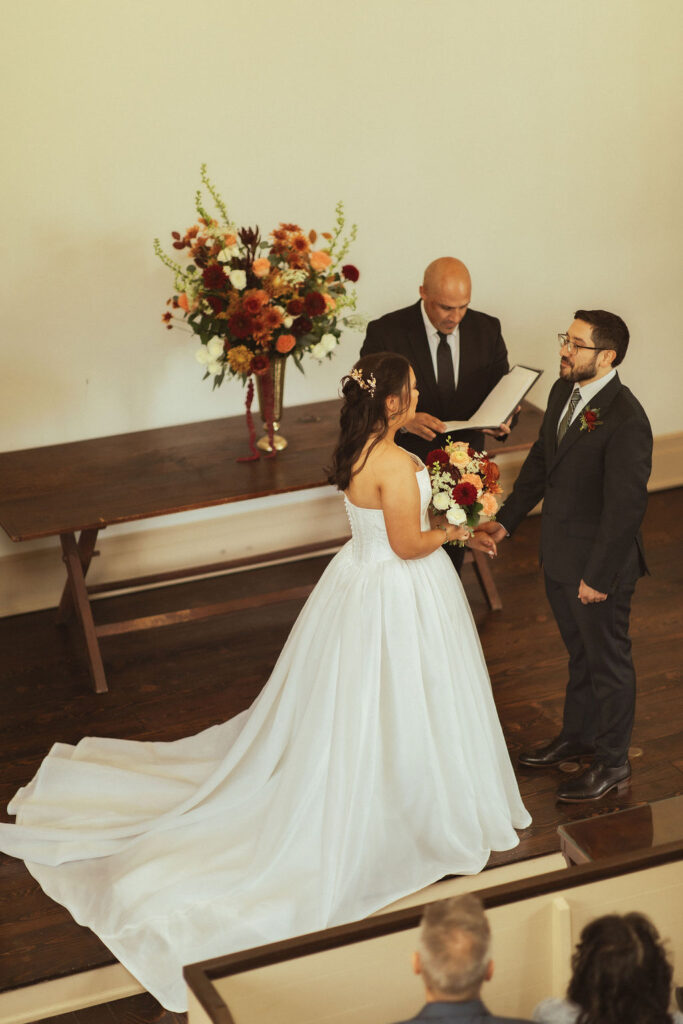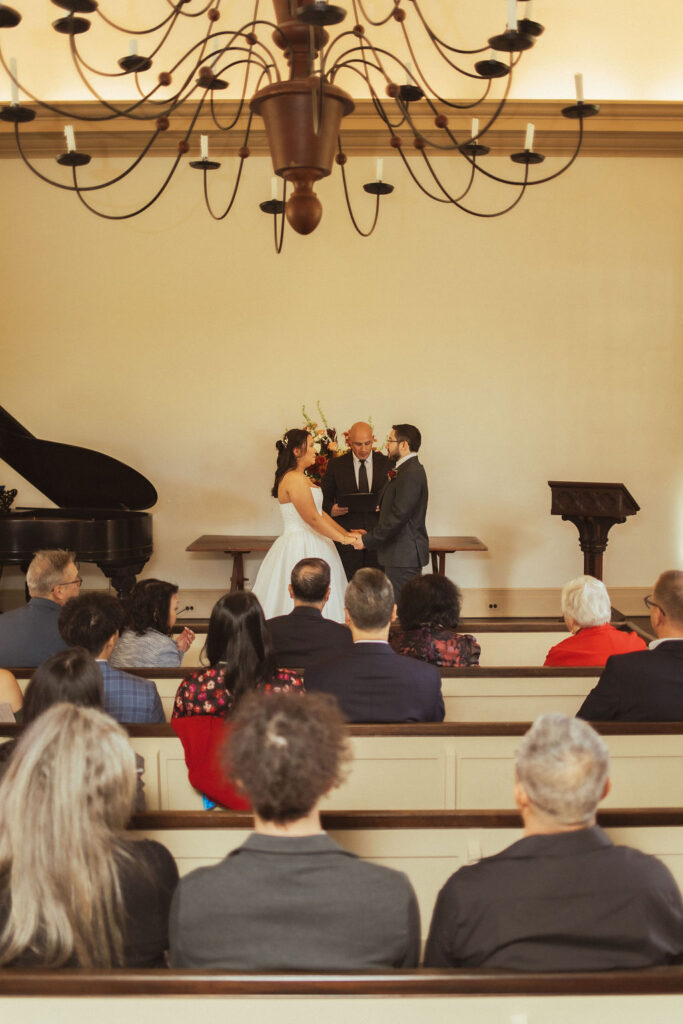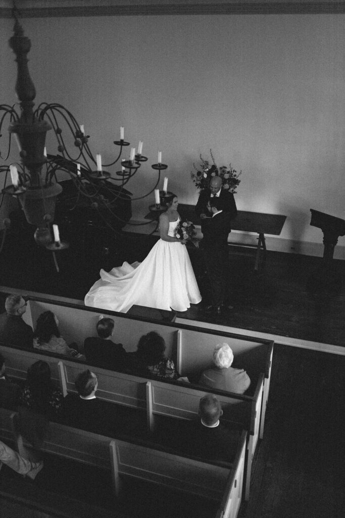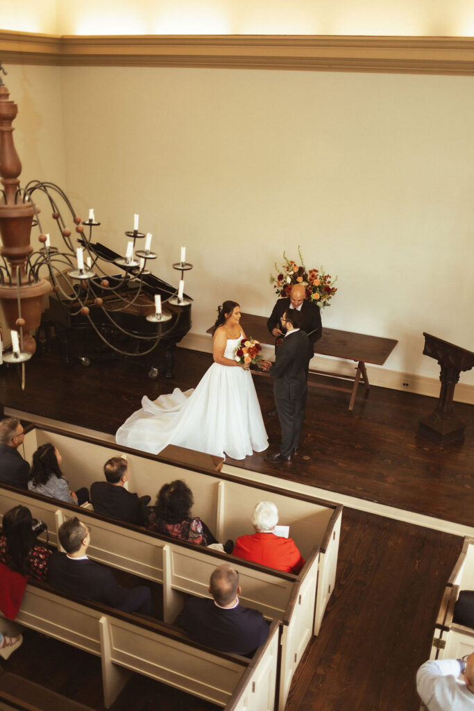The ceremony took place at the historic Chapel Restoration. It was a quaint non-denominational chapel. There was a stairway to the top floor so I was able to get photos from above looking down on their ceremony.