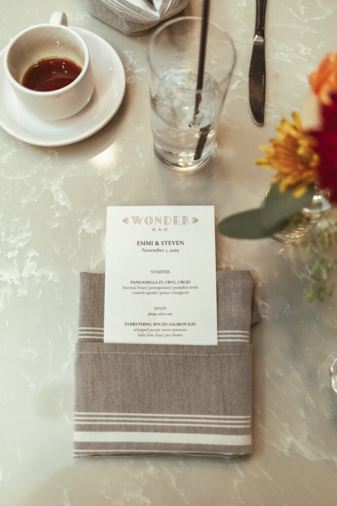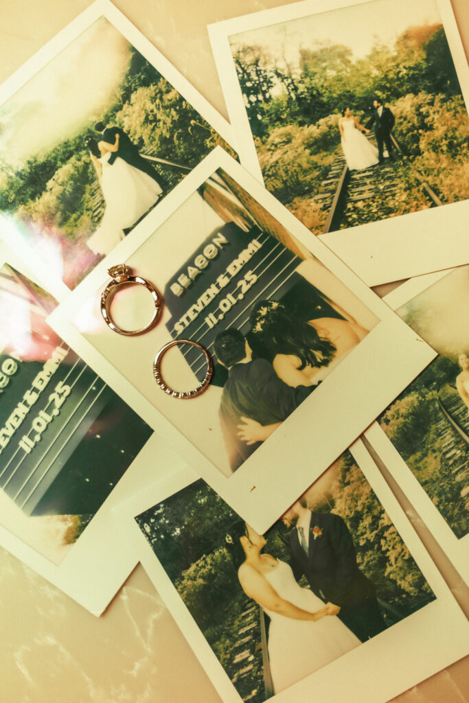 They had such sentimental detail items. From their personal movie ticket invitations to their special day, the special jewelry her grandmother gifted her, their personalized menu at the Wonder Bar and their Polaroids.