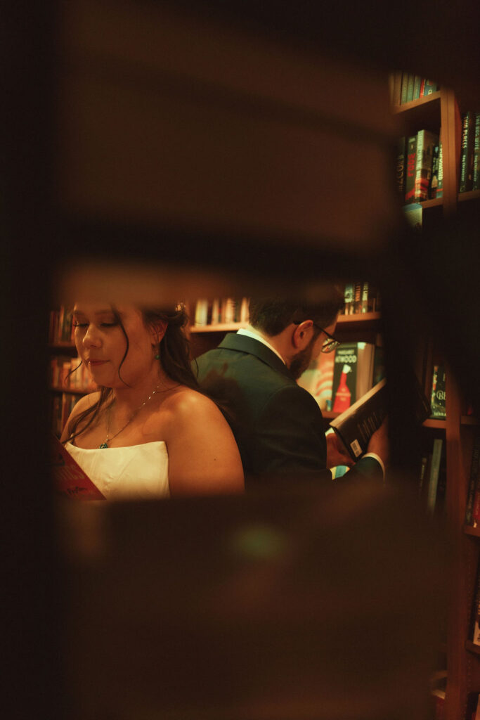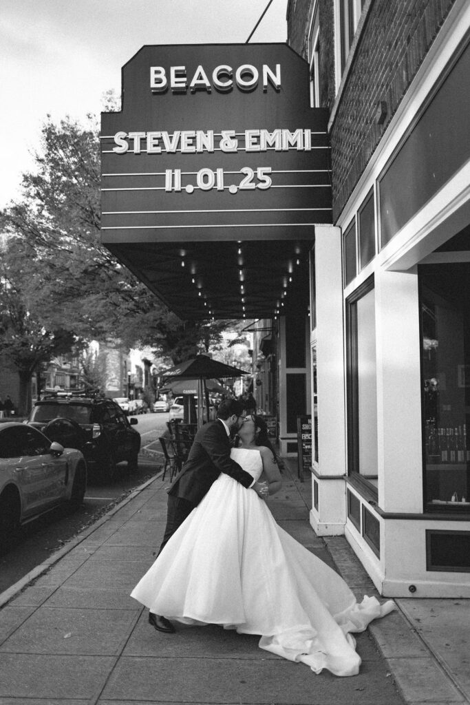 Emmi and Steven had SOOOOOO many ideas for where we could take their wedding portraits. We took photos at the chapel with the beautiful overlook of the mountains, on the railroad, walking around the streets of Beacon, in the movie theater, in the Wonder Bar, and in Stanza bookstore. It was truly an ADVENTURE! They valued their whole experience together that day, which made for such a FUN AND UNFORGETTABLE DAY FOR THEM!